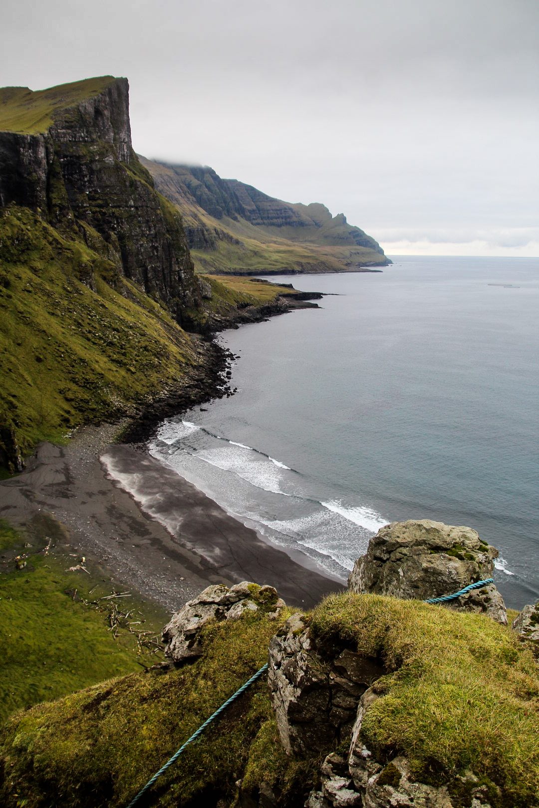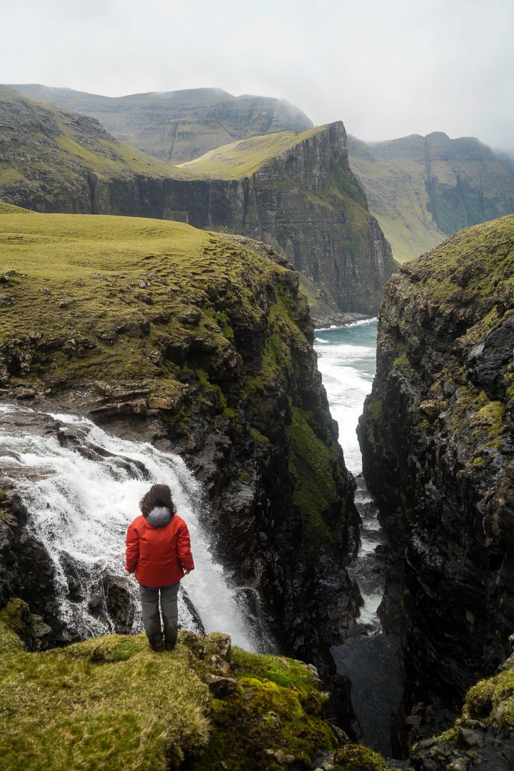 Beyond the waterfall, a hidden black sand beach awaits, offering sweeping views towards Víkar – an abandoned village perched in this remote coastal setting. This lesser-known spot is one of the Faroes’ true hidden gems. Here, we’ll pause to enjoy a packed lunch while your guide shares the story of Víkar and the people who once lived there.