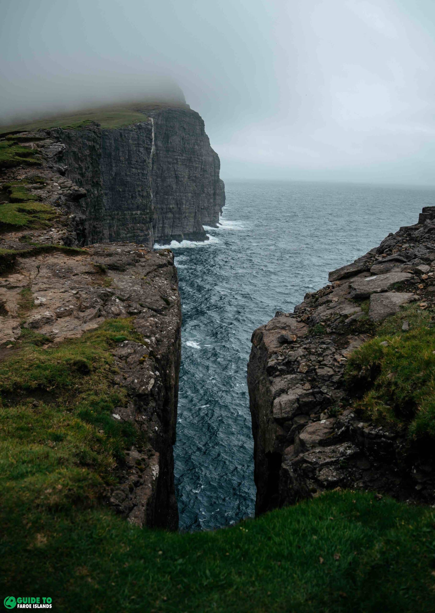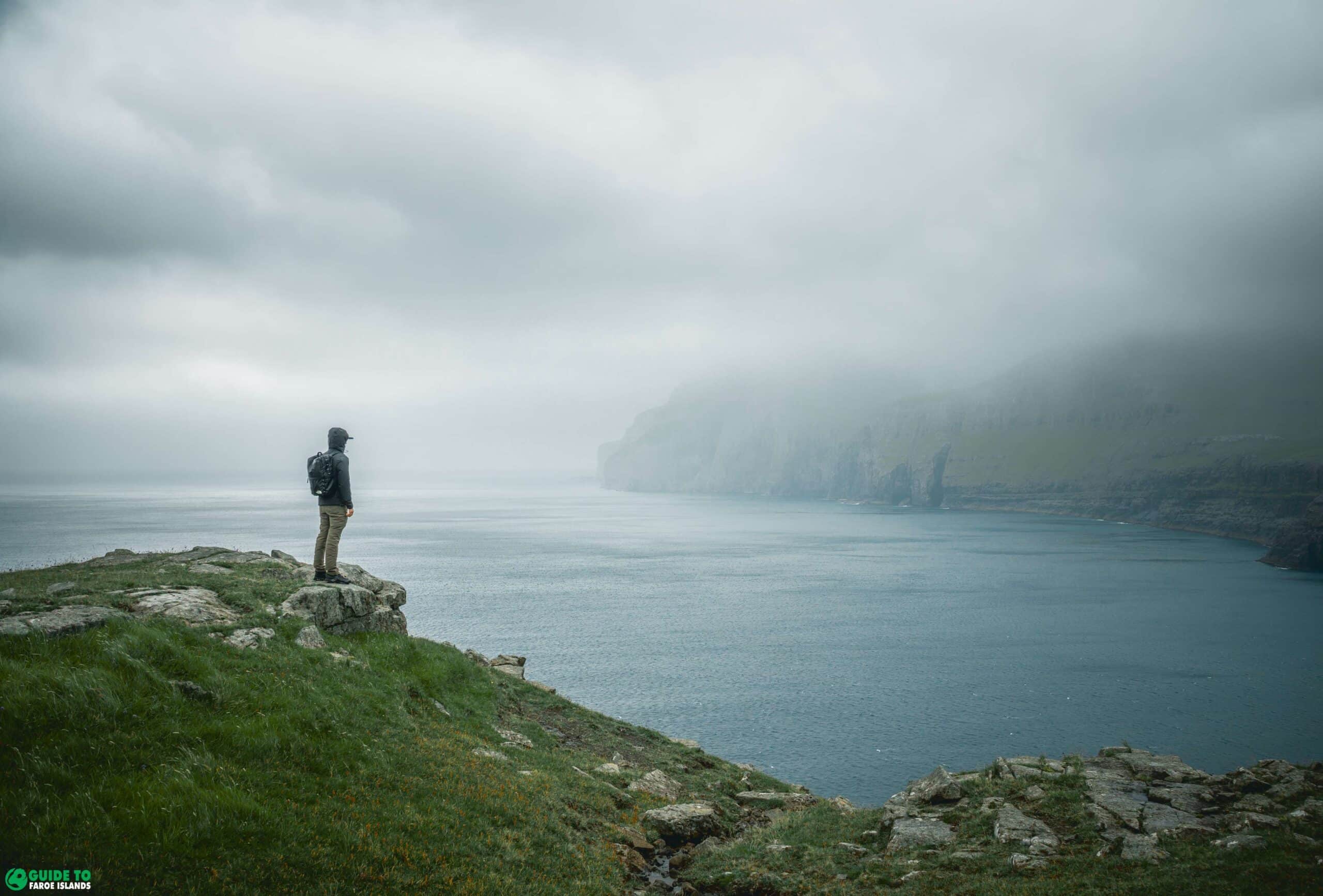 The hike is located at the very end of Nólsoy Island. You will reach the island by boat from Tórshavn. Starting in the only settlement on Nólsoy Island, the hike features views of the lovely neighbouring Streymoy Island and Sandoy Island.