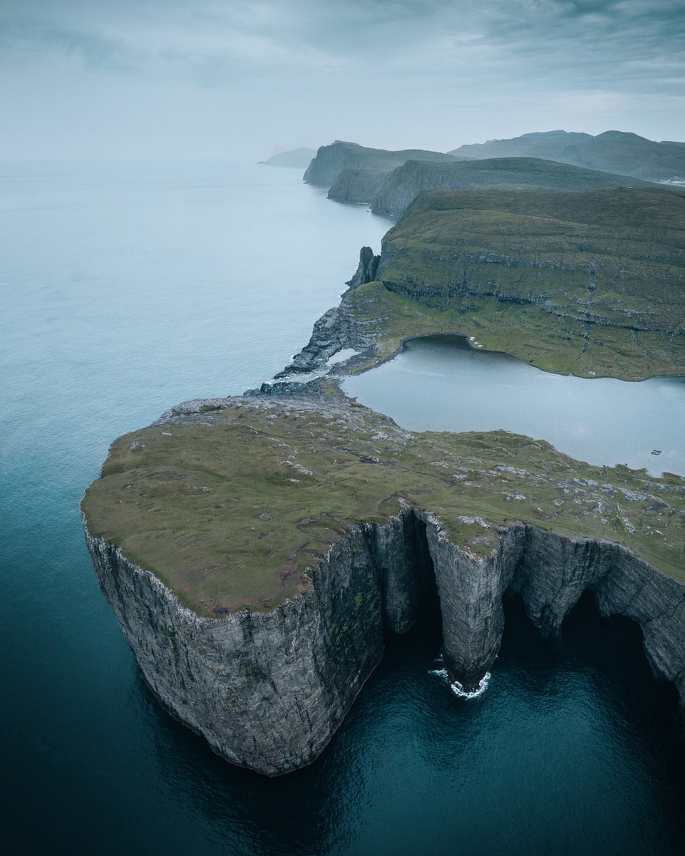 First you will enjoy one of the most popular hikes on the Faroe Islands. You will hike to Trælanípa // the Slave Cliff, where you will be exposed to the stunning Lake Above the Ocean.