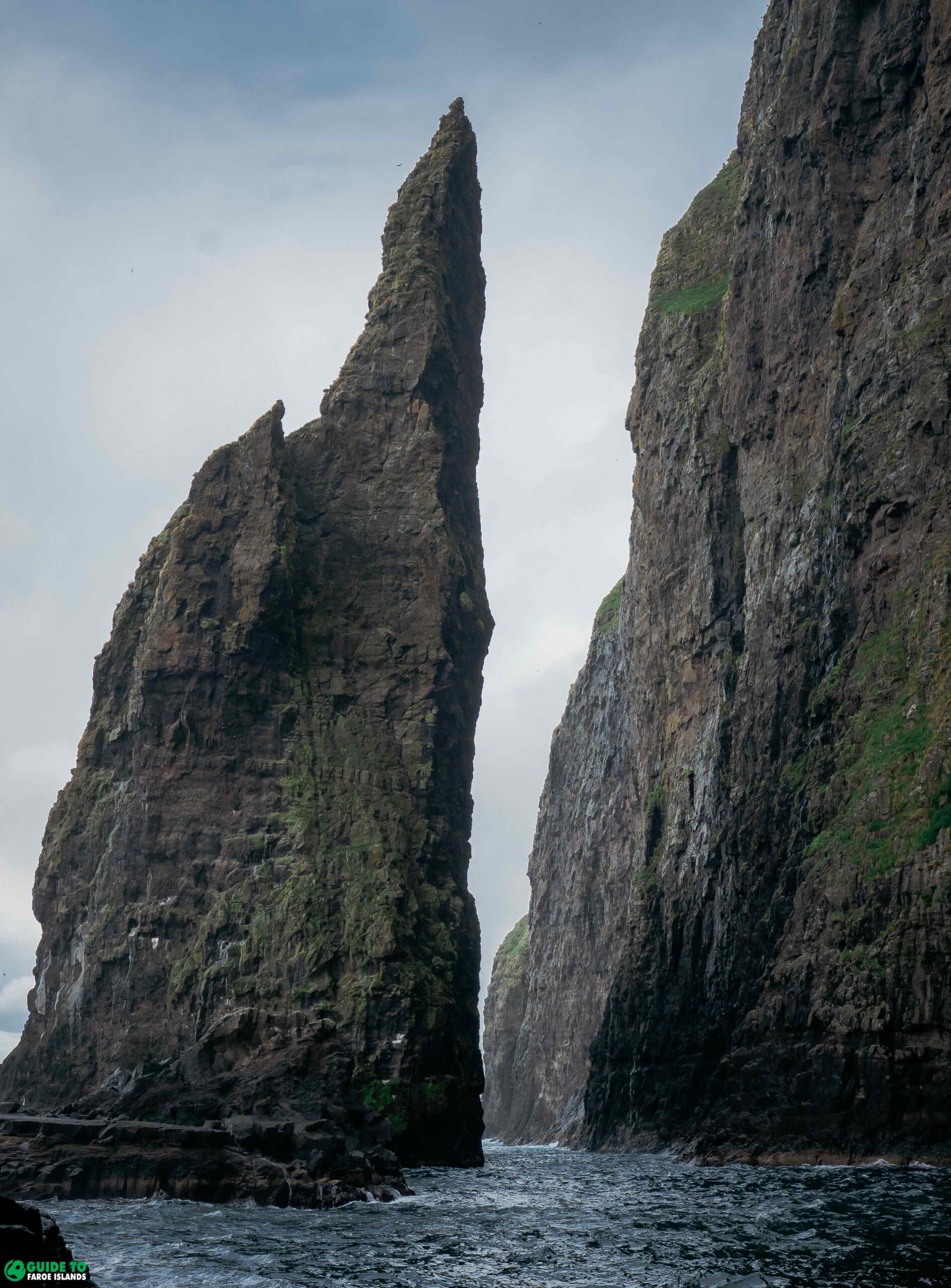From the boat you will see high mountain peaks on Streymoy Island and many caves along the coastline. You will sail only few metres from the highest sea stack in the area Heygadrangur which rises 144 m (472 ft) out of the salty North Atlantic Ocean.