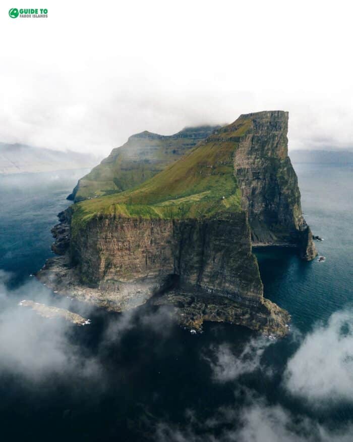 You will also have unbeatable views of the lovely Kunoy Island, Eysturoy Island and you might also see the almighty rock formations Risin og Kellingin // The Giant and the Witch in the horizon. As everywhere on the Faroe Islands, mist and fog can come in your way for an undisturbed view of the breathtaking vistas.